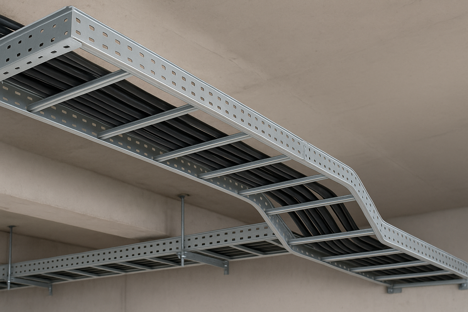 Proses pembuatan kabel tray dilakukan dengan teknik galvanisasi panas, di mana baja dicelupkan ke dalam cairan seng bersuhu tinggi sekitar 450–460°C. Proses ini menciptakan lapisan pelindung seng dengan ketebalan minimal 65 mikron yang menempel kuat pada permukaan logam. Hasilnya adalah tray yang tahan lama dan mampu menghadapi paparan hujan, panas matahari, serta kelembapan tinggi tanpa mengalami karat.